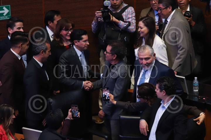 CIUDAD DE MÉXICO, 08ABRIL2026.- Roberto Velasco Álvarez, secretario de Relaciones Exteriores, saludó a Ignacio Mier, presidente de la JUCOPO, al término de la ratificación de su nuevo cargo en el Senado de la República. FOTO: GRACIELA LÓPEZ/CUARTOSCURO.COM