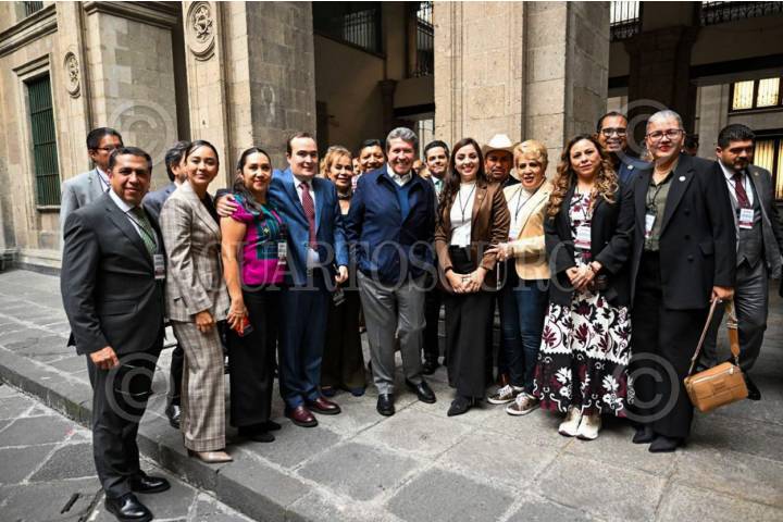CIUDAD DE MÉXICO. 20NOVIEMBRE2025.- Legisladores de Morena, junto con el coordinador de la fracción Ricardo Monreal Ávila; caminaron por calles del centro histórico rumbo a Palacio Nacional a la reunión con la Presidenta, Claudia Sheinbaum Pardo. FOTO: CUARTOSCURO.COM