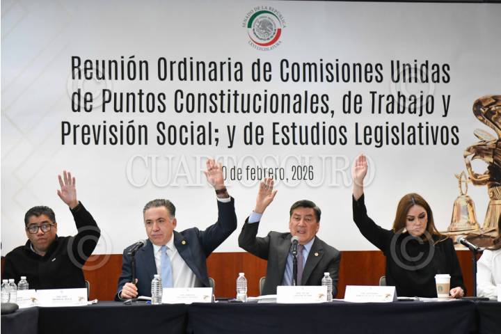 CIUDAD DE MÉXICO, 10FEBRERO2026.- Los legisladores Saúl Monreal; Enrique Inzunza Óscar Cantón Zetina y Geovanna Bañuelos, durante la reunión ordinaria de Comisiones Unidas de Puntos Constitucionales, de Trabajo y Previsión Social, y de Estudios Legislativos de la Cámara de Senadores en la que se aprobó la reforma a la Constitución para reducir la jornada laboral a 40 horas. FOTO: MARIO JASSO/CUARTOSCURO.COM