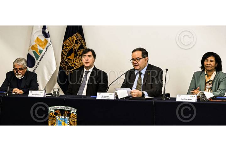 CIUDAD DE MÉXICO, 13ABRIL2026.- La educación superior pública, autónoma, rigurosa y socialmente comprometida, sigue siendo una de las mayores reservas éticas, intelectuales y democráticas de América Latina y el Caribe, dijo el rector de la UNAM, Leonardo Lomelí Vanegas, al dar la bienvenida a rectoras y rectores a la CIV Reunión Ordinaria del Consejo Ejecutivo de la Unión de Universidades de América Latina y el Caribe (UDUALC). FOTO: UNAM/CUARTOSCURO.COM