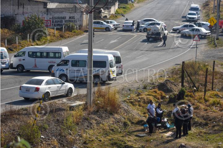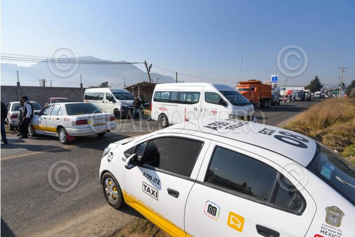 TENANGO DEL VALLE, ESTADO DE MÉXICO, 04FEBRERO2026.- Transportistas realizaron bloqueos a lo largo de la carretera Tenango-La Marquesa, Tenango-Santiago Tianguistenco denunciando el mal estado de estas vialidades que pasan por varios poblados, la mayor problemática son los baches, choferes de taxis y urbvans bloquearon diversos puntos desde muy temprana hora, esta problemática no es reciente y llevan pidiendo mejoras en los caminos pero sin ser atendidos. FOTO: CRISANTA ESPINOSA AGUILAR/CUARTOSCURO.COM