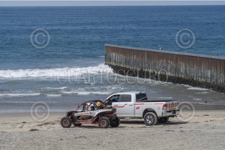 TIJUANA BAJA CALIFORNIA 19SEPTIEMBRE2025.-Unidades de Bomberos en Playas de Tijuana. Por primera vez se realizó un simulacro de tsunami en Playas de Tijuana, con la participación de 100 personas, así como elementos de Bomberos y Protección Civil Municipal. El ejercicio incluyó el cierre de vialidades desde el Faro y simuló un tsunami de magnitud 9.5 con epicentro en Hawái, lo que daría un margen de 30 minutos para evacuar. Personal de Protección Civil brindó información preventiva a los asistentes, en el marco de la conmemoración por los 40 años del sismo de 1985. FOTO OMAR MARTÍNEZ / CUARTOSCURO.COM