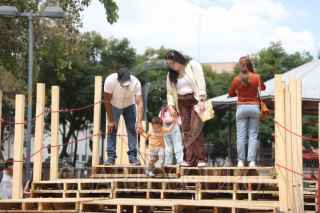 CIUDAD DE MÉXICO, 21SEPTIEMBRE2025.- Varias propuestas arquitectónicas fueron instaladas de manera temporal en la Alameda Central en el marco del Festival de Arquitectura y Ciudad Mextrópoli. Este encuentro cumple doce años y en esta edición uno de sus objeticos principales es representar la vivienda colectiva, como una de las necesidades principales en las grandes ciudades como la Ciudad de México. Las instalaciones colocadas con materiales como madera, alambres y plantas invitaron a los paseantes para explorarlas. FOTO: MOISÉS PABLO/CUARTOSCURO.COM