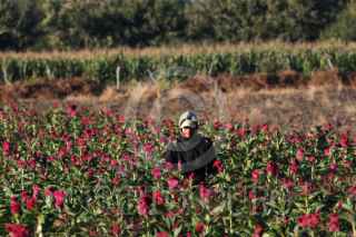 JANTETELCO, MORELOS, 21SEPTIEMBRE2025.- Vida cotidiana en el campo de Amayuca, un joven fumiga una plantación de flor terciopelo. FOTO: MARGARITO PÉREZ RETANA/CUARTOSCURO.COM
