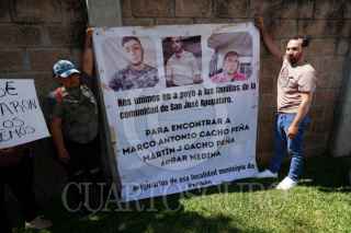 LOS REYES, MICHOACÁN, 23SEPTIEMBRE2025.- Familiares de los jóvenes Luis Edgar Medina y los hermanos Marco Antonio y Martín Jesús Cacho Peña, fueron reportados como desaparecidos el 11 de septiembre en Chilchota, Michoacán. Sus familias han realizado bloqueos carreteros para exigir su localización con vida, señalando la falta de atención de las autoridades. Los jóvenes habían ido a Zacapu para realizar trámites para legalizar vehículos de procedencia norteamericana, pero perdieron contacto con su familia cuando a bordo de una camioneta circulaban por Chilchota. FOTO: JUAN JOSÉ ESTRADA SERAFÍN/CUARTOSCURO.COM