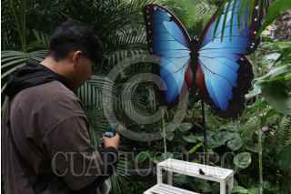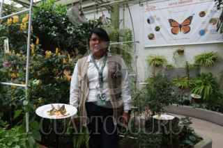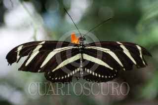 CIUDAD DE MÉXICO, 25SEPTIEMBRE2025.- Una mariposa zebra se alimenta de una flor en el Mariposario del Zoológico de Chapultepec, lugar donde se pueden conocer las diferentes especies de mariposas que habitan en el santuario, así como su cuidado y protección. El jardín está abierto al público en el horario del Zoológico y cuenta con clima controlado, plantas, flores, luz natural y una cascada en el que conviven actualmente 10 especies de mariposas tropicales, en donde pasean y comen fruta libremente durante su vida. El laboratorio de pupas es un espacio solo para personal autorizado en donde que cuidan las especies que llegan de los estados de Guerrero y Yucatán con temperatura controlada, así mismo se separan y se colocan en contenedores con un alfiler para permitir su reproducción y su crianza para su liberación. En esta etapa las mariposas tardan en emerger de 1 a 2 semanas dependiendo de la especie en donde se puede observar su metamorfosis y la evolución de los colores de cada una. FOTO: GRACIELA LÓPEZ /CUARTOSCURO.COM
