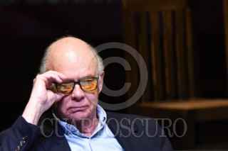 CIUDAD DE MÉXICO, 28SEPTIEMBRE2025.- Hugo Hiriart, escritor y dramaturgo mexicano, durante su homenaje realizado en la Sala Miguel Covarrubias del Centro Cultural Universitario de la Universidad Nacional Autónoma de México (UNAM) en la que se destacó su trayectoria en el ámbito literario. FOTO: MARIO JASSO/CUARTOSCURO.COM