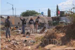 CIUDAD JUÁREZ, CHIHUAHUA, 30SEPTIEMBRE2025.- En un predio de Parajes de San José se han localizado hasta este martes cuatro osamentas: tres halladas el sábado y una más hoy, envuelta en una cobija. Agentes de la Unidad de Personas Ausentes, antropólogos forenses y binomios K9 continúan con la búsqueda en el terreno con apoyo de retroexcavadoras. De manera extraoficial no se descarta que puedan aparecer más cuerpos enterrados en la zona. Extraoficialmente se maneja que este sitio era usado por el crimen organizado como un panteón clandestino. FOTO: MANUEL SÁNCHEZ/CUARTOSCURO.COM