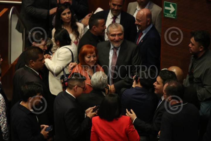CIUDAD DE MÉXICO, 01OCTUBRE2025.- Rosario Piedra Ibarra, presidenta de Comisión Nacional de los Derechos Humanos, y el senador Adán Augusto se saludaron durante su participación en la Sesión Solemne en el Senado de la República. FOTO: GRACIELA LÓPEZ/CUARTOSCURO.COM
