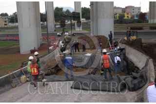 CIUDAD DE MÉXICO 10OCTUBRE2025.- Se formó un socavón en el Distribuidor Vial de la Concordia a unos cuantos metros dedonde hace unas semanas una pipa de gas volcara y explotara. En el lugar continúan los trabajos de relleno. FOTO:ROGELIO MORALES /CUARTOSCURO.COM
