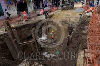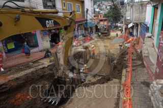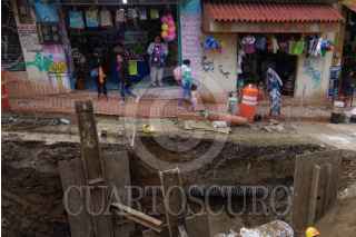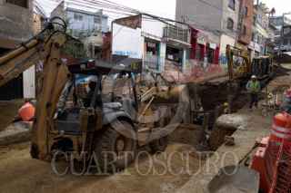 CIUDAD DE MÉXICO 02OCTUBRE2025.- Continúan los trabajos de reparación y relleno del mega socavón formado en la calle Cornejal de la Colonia San Bernabé Ocotepec en la alcaldía Magdalena Contreras. FOTO:ROGELIO MORALES /CUARTOSCURO.COM