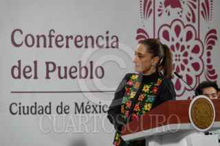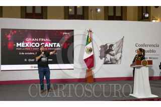 CIUDAD DE MÉXICO 02OCTUBRE2025.- Claudia Sheinbaum, presidenta de México, durante, la presentación del programa México Canta en la Conferencia del Pueblo desde Palacio Nacional. FOTO:ROGELIO MORALES /CUARTOSCURO.COM