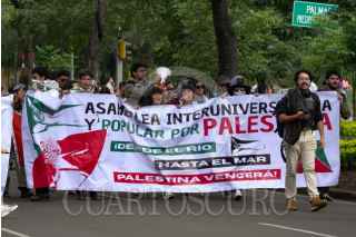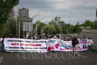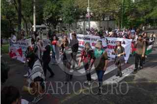 CIUDAD DE MÉXICO 03OCTUBRE2025.- Diversos colectivos marcharon sobre Paseo de la Reforma, hacia la embajada de Israel en México, esto en protesta por las acciones de Israel contra Palestina. FOTO:ROGELIO MORALES /CUARTOSCURO.COM