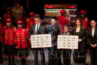 TLAXCALA, TLAXCALA, 04OCTUBRE2025.- Lorena Cuéllar Cisneros, gobernadora de Tlaxcala, acompañada de Alfonso Sánchez García, presidente municipal de Tlaxcala; Olivia Salomón Vivaldi, directora general de la Lotería Nacional, y Josefina Rodríguez Zamora, secretaria de Turismo, encabezaron ayer el Sorteo Superior N° 2859 con un billete conmemorativo "500 Años de la fundación de Tlaxcala" en el teatro Xicohténcatl. FOTO: ALAIN HERNÁNDEZ/CUARTOSCURO.COM