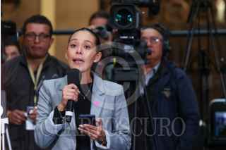 CIUDAD DE MÉXICO, 06OCTUBRE2025.- La periodista Anahí Torres de San Luis Potosí denunció amenazas de muerte hacia su persona durante la Mañanera del Pueblo, esto cuando la Presidenta de México le dio la palabra. La comunicadora señaló que esto se debe a denunciar una red de espionaje que opera el gobierno de San Luis Potosí. Relato que el pasado 2 de octubre cuatro sujetos armados la interceptaron afuera de su oficina. La mandataria le contesto que revisaría su caso y si es el caso se le brindará protección. FOTO: MOISÉS PABLO/CUARTOSCURO.COM