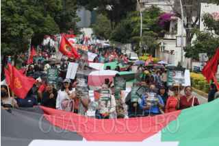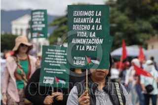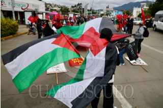 OAXACA DE JUÁREZ, OAXACA, 07OCTUBRE2025.- Organizaciones sociales marcharon en Oaxaca en apoyo a Palestina a dos años del inicio de la guerra. Portando pancartas y gritando consignas, pidieron la liberación del pueblo palestino y el rompimiento de relaciones de México con Israel. FOTO: CAROLINA JIMÉNEZ/CUARTOSCURO.COM