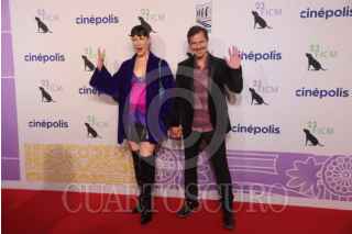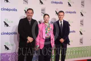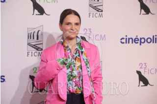 MORELIA, MICHOACÁN, 10OCUBRE2025. Cuauhtémoc Cárdenas Batel, Juliette Binoche y Alejandro Ramírez a su paso por la alfombra roja inaugural del 23er Festival Internacional del Cine de Morelia, en el Teatro Maríano Matamoros. FOTO: EDGAR NEGRETE LIRA/CUARTOSCURO.COM