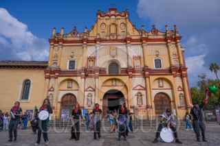 SAN CRISTÓBAL DE LAS CASAS, CHIAPAS, 12OCTUBRE2025.- En respuesta a las agresiones más recientes contra las comunidades zapatistas, particularmente en el Caracol Dolores Hidalgo, integrantes de la sociedad civil organizada y adherentes a la Sexta Declaración de la Selva Lacandona llevaron a cabo una acción política y cultural en el corazón de la ciudad. La jornada comenzó con un pronunciamiento público en el que se expresó la preocupación por la creciente violencia que enfrentan las comunidades autónomas del EZLN, así como la exigencia al Estado mexicano de detener los ataques y respetar los procesos de organización civil y pacífica en los territorios zapatistas. FOTO: ISABEL MATEOS HINOJOSA /CUARTOSCURO.COM