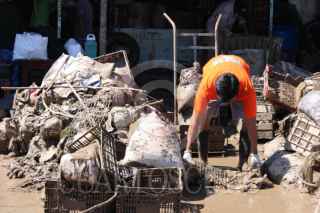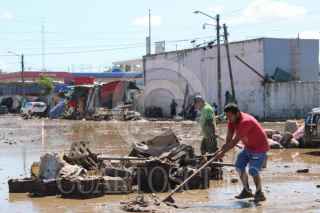 POZA RICA, VERACRUZ, 12OCTUBRE2025.- En la Central de Abastos las escenas son de desolación: tomates, papas y cebollas cubren los techos y las calles internas como si la corriente los hubiera arrojado sin rumbo. Las bodegas y los locales están convertidos en montones de lodo y restos de lo que fueron toneladas de alimentos básicos. Los comerciantes trabajan con palas y cubetas, intentando limpiar entre el barro endurecido, sin maquinaria ni apoyo gubernamental. “Todo se perdió, no quedó nada”, lamenta Amado, mientras observa su bodega vacía. “Cada local tenía más de 70 toneladas de producto. Ahora solo tenemos lodo y el olor a podrido”. A su alrededor, otros vendedores se suman a la faena improvisada, sacando cajas podridas y frutas fermentadas bajo un sol que hace más difícil soportar el ambiente. FOTO: CARLOS NAVA/CUARTOSCURO.COM