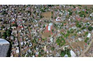 POZA RICA, VERACRUZ, 12OCTUBRE2025.- Desde los aires se observan las calles de la ciudad llenas de toneladas de lodo, esto tras el desbordamiento del río Cazones, el pasado viernes, Por el momento los habitantes intentan limpiar sus propiedades para salvar lo que puedas. FOTO: CARLOS NAVA/CUARTOSCURO.COM