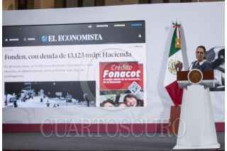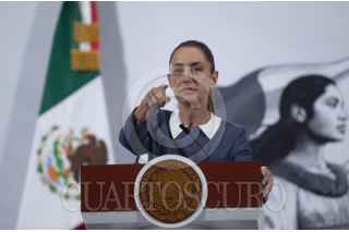 CIUDAD DE MÉXICO, 15OCTUBRE2025.- Claudia Sheinbaum Pardo, presidenta de México durante conferencia matutina en Palacio Nacional la cual se dedicó al tema de las inundaciones en el país. En la imagen muestra nota sobre el Fonden. FOTO: ANDREA MURCIA /CUARTOSCURO.COM