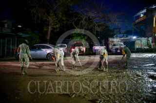 POZA RICA, VERACRUZ, 15OCTUBRE2025.- Elementos del Ejército Mexicano continúan con las labores de limpieza en la colonia Poza de Cuero, una de las más afectadas por el desbordamiento del río Cazones en Poza Rica. FOTO: CUARTOSCURO.COM