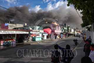 ECATEPEC, ESTADO, MÉXICO, 18OCTUBRE2025.- Se registró un incendio en una fábrica de plásticos Cerrada Calle 13 y la Calle 1 en la colonia Hank González del Municipio de Ecatepec. Cabe destacar que dicho incendio se extendió por más de cinco horas debido a los químicos que se utilizaban en el lugar. FOTO: ROGELIO MORALES /CUARTOSCURO.COM