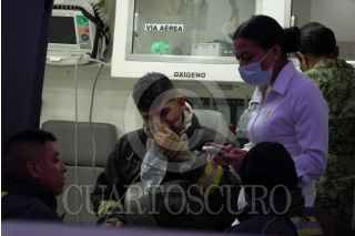 ECATEPEC, ESTADO, MÉXICO, 18OCTUBRE2025.- Al menos una decena de bomberos fueron atendidos por paramédicos, luego de más de cinco horas combaatiendo el incendio de una fábrica de plásticos Cerrada Calle 13 y la Calle 1 en la colonia Hank González del Municipio de Ecatepec. FOTO: ROGELIO MORALES /CUARTOSCURO.COM