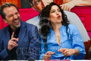 CIUDAD DE MÉXICO. 22OCTUBRE2025.- Cristian Magaloni, Enrique Arreola, Tiaré Scanda y Morris Gilbert en la presentación de la obra de teatro "La Nota", que se presentará en el libanés. FOTO: VICTORIA VALTIERRA/CUARTOSCURO.COM