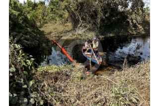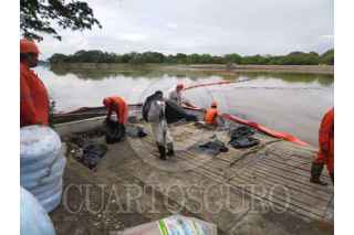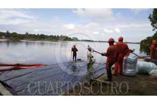 PANTEPEC, VERACRUZ, 23OCTUBRE2025.- La Secretaría de Marina activo el Plan Nacional de Contingencias para Derrames de Hidrocarburos y Sustancias Nocivas Potencialmente Peligrosas en las Zonas Marinas para combatir el derrame de hidrocarburos en el Río Pantepec-Tuxpan. Informó que se tienen desplegados de 750 elementos pertenecientes a PEMEX, autoridades locales, empresas privadas y Marina, quienes han instalado 22 barreras con un aproximado de 1,970 metros en las bocas de los esteros de Zapotal Zaragoza, Quinta Las Puertas, Casa Blanca, Tenechaco, Palma Sola, Tumilco, La Calzada, Tampamachoco y Jácome; asimismo, se llevan recolectados 345,000 litros de hidrocarburos. FOTO: SECRETARÍA DE MARINA/CUARTOSCURO.COM