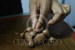 CIUDAD DE MÉXICO, 24OCTUBRE2025.- A unos días de la celebración del Día de Muertos, el chef Iván Rosales realiza pan de muerto negro en la cafetería Hibisco, ubicada en la alcaldía Xochimilco. La masa de pan de muerto negro se prepara con ralladura de frutas cristalizadas como mandarinas, limones y naranja, harina de trigo, y ceniza de totomoxtle, palabra que proviene del náhuatl que significa hoja seca del maíz; mediante este proceso el pan queda de color negro y sabor ahumado añadiendo azúcar para decorar el pan horneado. Lo que hace especial la elaboración de este de pan de muerto negro es la forma tradicional en que se prepara y el relleno de chantilly natural. FOTO: GRACIELA LÓPEZ/CUARTOSCURO.COM