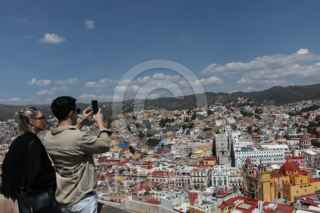 GUANAJUATO, GUANAJUATO, 25OCTUBRE2025.- Una pareja toma fotografías del Centro Histórico de Guanajuato desde el Mirador del Pípila. FOTO: GRACIELA LÓPEZ/CUARTOSCURO.COM