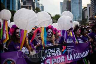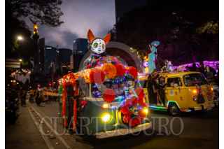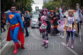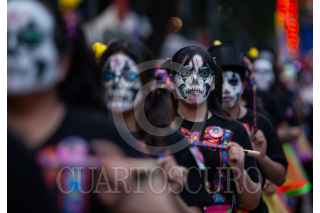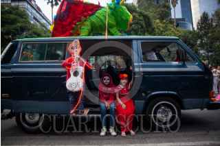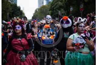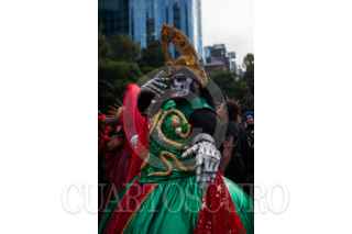 CIUDAD DE MÉXICO, 26OCTUBRE2025.- Partiendo desde el Ángel de la independencia para llegar a la plancha del Zócalo avanzado por Reforma decenas de colectivos se caracterizaron de catrinas para la Mega procesión de las Catrinas 2025. FOTO: ANDREA MURCIA / CUARTOSCURO.COM