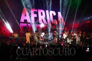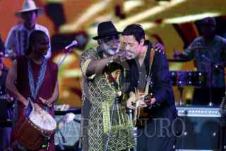 GUANAJUATO, GUANAJUATO, 26OCTUBRE2025.- El cantante Damon Albarn durante su participación en el concierto de África Express en la clausura de la Edición 53 del Festival Internacional Cervantino realizada en la Alhóndiga de Granaditas. FOTO: GRACIELA LÓPEZ/CUARTOSCURO.COM