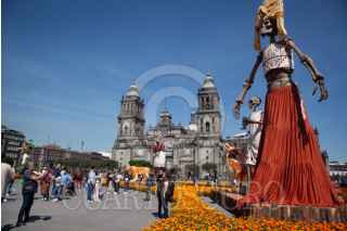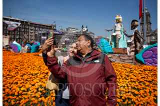 CIUDAD DE MÉXICO, 27OCTUBRE2025.- Decenas de personas visitan la megaofrenda colocada en la plancha del Zócalo hasta el 02 de noviembre. FOTO: ANDREA MURCIA / CUARTOSCURO.COM