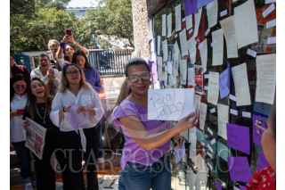 CIUDAD DE MÉXICO, 28OCTUBRE2025.- Activistas y escritoras realizaron un mitin poético frente a la librería del Fondo de Cultura Económica, bloqueando la entrada y colocando fotografías de autoras mexicanas, en protesta por las declaraciones de Paco Ignacio Taibo II sobre la literatura escrita por mujeres. FOTO: ANDREA MURCIA / CUARTOSCURO.COM