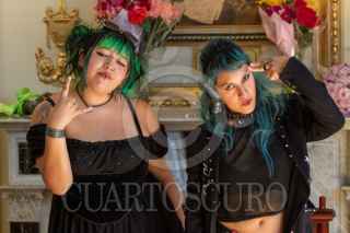 CIUDAD DE MÉXICO, 28OCTUBRE2025.- Luisa Fernanda Román Martínez, guitarrista y vocalista, e Ingrid Geanvieve Domínguez Ordoz, bajista, que forman parte de Las Fokin Biches dieron detalles de su espectáculo “Rostros Silenciados: Concierto-ritual de resistencia contra la violencia”, el 27 de noviembre en el Teatro Juárez. El día de hoy ofrecieron una conferencia de prensa en el Teatro de la Ciudad Esperanza Iris, en la cual dieron a conocer que tendrán como artistas invitados a Ana de Arco, Yuno, y June Caravan. FOTO: MOISÉS PABLO/CUARTOSCURO.COM