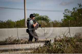 CULIACÁN, SINALOA, 29OCTUBRE2025.- Un grupo armado atacó a balazos una patrulla de la Guardia Nacional sobre la carretera Culiacán–El Dorado, justo frente a la Facultad de Agronomía de la Universidad Autónoma de Sinaloa (UAS), en la sindicatura de Costa Rica. El hecho ocurrió, cuando los agentes realizaban una persecución que se originó en la carretera “La 20” y culminó en este tramo del sur de la ciudad. Aunque no se reportaron personas lesionadas ni fallecidas, la unidad oficial sufrió daños por impactos de arma de fuego y ponchallantas arrojados por los agresores. FOTO: JOSÉ BETANZOS ZÁRATE/CUARTOSCURO.COM