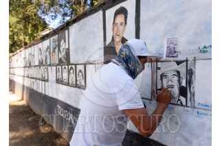TOLUCA, ESTADO DE MÉXICO, 30OCTUBRE2025.- En las paredes del Panteón de Santiago Tlacotepec, delegación de Toluca, se inmortaliza a aquellos que ya no se encuentran con nosotros y aquí tienen su última morada, un proyecto de Alejandro Vallejo, pintor y rotulista, originario de esta delegación. Desde el 2024 inició este proyecto, primero con la idea de pintar un mural referente al Día de Muertos basado en una película muy conocida y completarlo con retratos de aquellos que se encuentran en este lugar, como un homenaje y para que sus familiares los sigan recordando a los que ya no están con nosotros. La gente lo puede contactar a través de sus redes sociales para que inmortalice a sus muertos. FOTO: CRISANTA ESPINOSA AGUILAR/CUARTOSCURO.COM