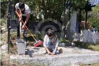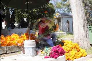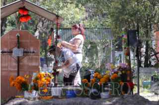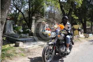CIUDAD DE MÉXICO, 31OCTUBRE2025.- Con el fin de evitar aglomeraciones algunas personas acudieron con antelación a limpiar y decorar las tumbas de sus difuntos, previo a las festividades del Día de Muertos en panteones de la Ciudad de México. Un trabajador del panteon Dolores carga con sus instrumentos de trabajo para ayudar a la limpieza de tumbas. FOTO: EDGAR NEGRETE LIRA/CUARTOSCURO.COM