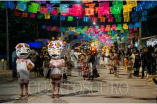 POMUCH, CAMPECHE, 01NOVIEMBRE2025.- Durante el festival del Día de Muertos en el poblado de pomuch, se presentó una exhibición de Pok ta Pok, el antiguo juego de pelota maya. Este ritual representaba la batalla entre la luz y la oscuridad, así como el eterno ciclo de la vida y la muerte en la cosmovisión maya. FOTO: MICHAEL BALAM/CUARTOSCURO.COM