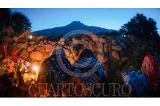 SAN ISIDRO BUENSUCESO, TLAXCALA, 02NOVIEMBRE2025.- En la madrugada de este Día de Muertos los habitantes de San Isidro Buensuceso se reunieron en el nuevo panteón de la comunidad para "alumbrar" el camino de sus seres queridos que han partido al más allá. Con velas, flores, comida y música los pobladores acompañaron a sus fieles difuntos en su camino de regreso a este plano terrenal. FOTO: ALAÍN HERNÁNDEZ/CUARTOSCURO.COM