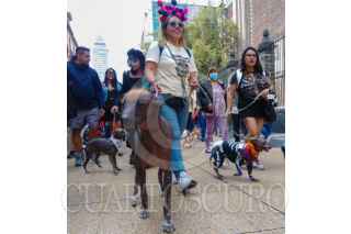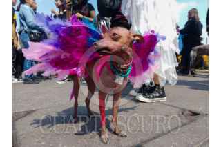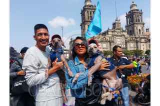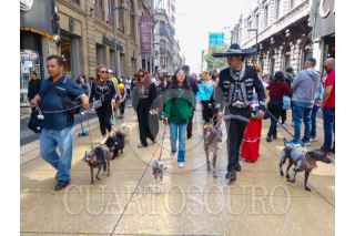 CIUDAD DE MÉXICO, 02NOVIEMBRE2025.- En las creencias prehispánicas se creía que el perro de raza Xoloitzcuintle o Xolos era un guardián que ayudaba a las personas que morían en su viaje al Mictlán, por esta razón personas de Xololandia realizaron una caminata con sus canes por la calle de Madero y culmino en la Megaofrenda del Zócalo. Ahí los Xolos se tomaron fotos con curiosos y mostraron sus mejores disfraces. FOTO: MOISÉS PABLO/CUARTOSCURO.COM