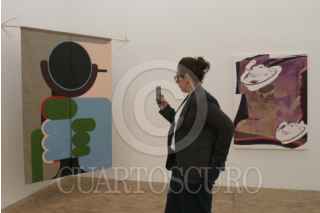 CIUDAD DE MÉXICO, 05NOVUEMBRE2025.- Una mujer toma fotografías de obras que se encuentran en la exposición de la XX Bienal Rufino Tamayo en el Museo Tamayo. FOTO: GRACIELA LÓPEZ/CUARTOSCURO.COM