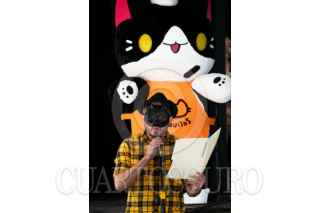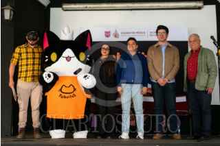 CIUDAD DE MÉXICO, 07NOVIEMBRE2025.- El personaje y presentador “Miauricio” dio inicio a la conferencia de prensa del Festival Gatotitlán, en el Museo Panteón de San Fernando. FOTO: CAMILA AYALA BENABIB / CUARTOSCURO.COM