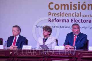 TOLUCA, ESTADO DE MÉXICO, 07NOVIEMBRE2025.- Delfina Gómez Álvarez, Gobernadora del Estado de México durante la inauguración de la Audiencia Pública sobre la Reforma Electoral, en el marco de los Trabajos de la Comisión Presidencial para la Reforma Electoral, en donde se dieron cita también académicos, representantes sociales, autoridades estatales y federales, en busca de recopilar ideas y generar propuestas en beneficio de la población; teniendo como sede el Aula Magna “Lic. Gustavo A. Barrera Graf” en la Escuela Judicial del Estado de México. FOTO: CRISANTA ESPINOSA AGUILAR/CUARTOSCURO.COM