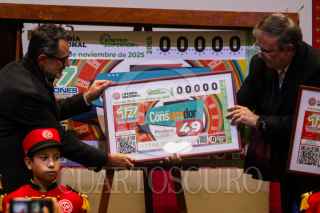 CIUDAD DE MÉXICO. 10NOVIEMBRE2025.- Marcelo Ebrard de la secretaría de Economía se develó el billete de lotería conmemorativo al 49 aniversario de la revista del Consumidor. FOTO: VICTORIA VALTIERRA/CUARTOSCURO.COM