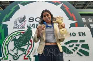 TOLUCA, ESTADO DE MÉXICO, 12NOVIEMBRE2025.- Valentina Murrieta, arquera mexicana, reconocida con el Guante de Oro a la Mejor Portera del Mundial Femenil Sub-17 de Marruecos 2025, dio la patada de inicio de la campaña “Somos México”, campaña de la Selección de Fútbol Mexicana. FOTO: CRISANTA ESPINOSA AGUILAR/CUARTOSCURO.COM