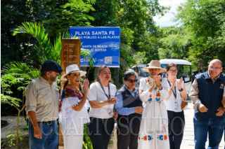 TULUM, QUINTANA ROO, 12NOVIEMBRE2025.- visitantes y turistas pueden disfrutar de playas públicas abiertas los 365 días del año, Junto a la secretaria de Turismo, Josefina Rodríguez Zamora, la gobernadora del estado Mara Lezama Recorrieron los accesos públicos en “El Parque del Jaguar”, para recorrer las cinco playas de esta Área Natural Protegida. En este sitio se podrá caminar, andar en bicicleta o simplemente descansar frente al mar, en entornos seguros y accesibles. FOTO: CUARTOSCURO.COM