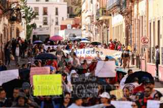 ZACATECAS, ZACATECAS, 13NOVIEMBRE2025.- Mestros de la sección 34 del Sindicato Nacional de Trabajadores de la Educación y de la Coordinadora Nacional de Trabajadores de la Educación (SNTE-CNTE) realizaron una mega marcha por las principales calles del centro histórico en el marco del “Paro Nacional” de 48 horas impulsado por la Coordinadora. FOTO: ADOLFO VLADIMIR /CUARTOSCURO.COM